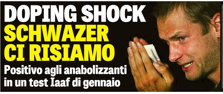 Era il 6 Agosto del 2012 e la spedizione Azzurra si preparava a raggiungere Londra in occasione dei Giochi Olimpici. «Positivo all’eritropoietina», l’esito delle analisi. L’Epo, per utilizzare un acronimo più conosciuto, è ritenuto una sostanza proibita. Automatica l’estromissione dalla comitiva italiana. In lacrime l’alto-atesino ammetterà di averne fatto uso “per essere competitivo come gli altri”, nel corso di una conferenza stampa poi diventata storica. E così anche l’oro conquistato, appena quattro anni prima, in occasione dell’Olimpiade di Pechino, perde improvvisamente di peso e valore, anche se Schwazer farà di tutto per tenerselo stretto, dimostrando di essersi presentato al via “pulito”, almeno in quell’occasione. Congedato dall’arma dei Carabinieri, nel 2013 viene squalificato per 3 anni e 6 mesi.