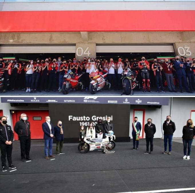 Il gran premio si apre nel ricordo di Fausto Gresini, omaggiato con un minuto di silenzio congiunto dalla Motogp con la Formula 1, con Davide Brivio ex team principal Suzuki passato in F1 con Alpine in prima linea per omaggiare l’amico a Imola.