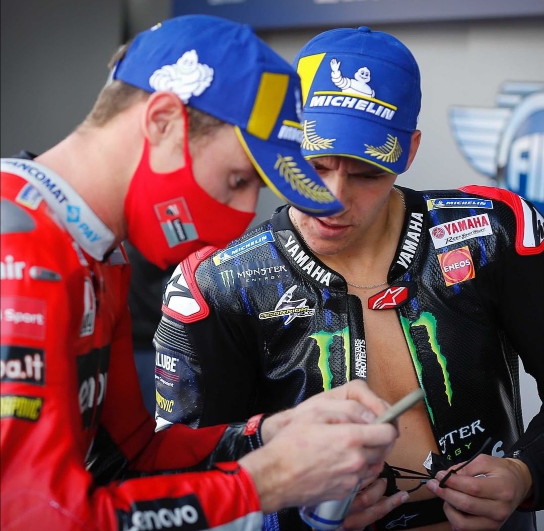 Le dichiarazioni dei primi tre: Miller contento di essere tornato al meglio dopo le difficoltà avute nei primi tre gp, fiducioso in vista della gara, grazie alle buone sensazioni avute in sella, si sente pronto ad attaccare non appena ne avrà l’occasione; Morbidelli esalta il feeling avuto con la sua moto in questa pista, che non avendo molti rettilinei gli permette di sfruttare al meglio la ciclistica Petronas, secondo il “Morbido” la sua gara dipenderà dalla partenza;Quartararo, dominatore indiscusso delle qualifiche, ha avuto a suo dire delle difficoltà in curva 6 e in curva 13. Sa di poter fare ancora meglio e forse si aspettava un tempo più basso di quello che lo ha portato in pole. Immancabile il ringraziamento al team che dovrà fare una scelta accurata riguardo le mescole da montare.
