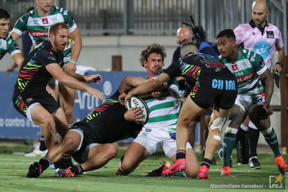 Un match noioso nella prima frazione di gioco, ma entusiasmante nella ripresa, dilungatosi notevolmente a causa di infortuni e regole sperimentali. Ad andare in vantaggio sono i padroni di casa dopo 24 minuti di battaglia, con Paolo Pescetto che mette a segno i primi 3 punti dello scontro. Proprio l’apertura delle Zebre sarà costretta ad uscire in barella pochi secondi a seguire a causa di un durissimo contatto contro Halafihi, fatto che fermerà il gioco per oltre 10 minuti. Al 28′ le splendide mani di Brex, Hayward e Zanon permettono a Padovani di portare avanti la Benetton grazie alla meta al largo, convertita da Garbisi. Nei minuti finali della prima frazione di gioco i biancoverdi vanno inizialmente in inferiorità numerica per l’ammonizione a Thomas Gallo, successivamente viene assegnata una meta tecnica alle Zebre che costringerà i leoni a rimanere in 13 per la medesima sanzione a Corniel Els. Per l’ennesima volta in questa stagione le Zebre non sfruttano questo prezioso vantaggio ma concedono al 40′ una punizione, trasformata da Garbisi. Si va all’intervallo in pareggio, 10-10.