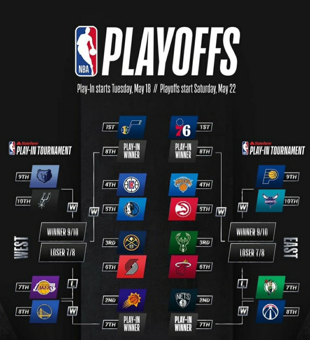 La post-season di questa stagione presenta un format inedito. Infatti non sono solo le prime 8 di ogni Conference ad accedere ai playoff. A questi ultimi accedono direttamente le prime 6 di ogni Conference, mentre quelle classificate dal 7° al 10° posto affronteranno il play-In. Questi sarebbero una sorta di spareggi che assegnano le ultime due carte per i playoff. Il primo passo viene assegnato nel match tra la 7° e 8° classificata, che in caso di vittoria andrà alla post-season contro la seconda della Conference di appartenenza. La perdente invece affronterà il turno di ripescaggio contro la vincente del match tra la 9° e la 10° classificata. Chi ne uscirà vittorioso da questo spareggio accederà ai playoff dove se la vedrà con la prima classificata della Conference. Le partite dei play-In saranno tutte in gara secca