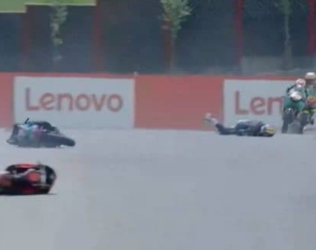 All’uscita dell’Arrabbiata 2 Dupasquier perde il controllo della propria moto e viene travolto da Alcoba e Sasaki.