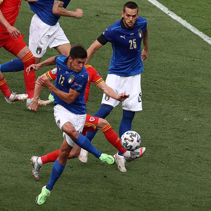 Mancini consapevole di essere già agli ottavi sceglie un undici caratterizzato dal turnover per dare la possibilità a chi avrà meno minuti durante il cammino Europeo di avere una chance e di mettersi in mostra. Pur effettuando considerevoli cambi, gli azzurri vincono la terza gara e agguantano il record di vittorie consecutive di Pozzo. Decide il match il tiro di Pessina al 39′ minuto.