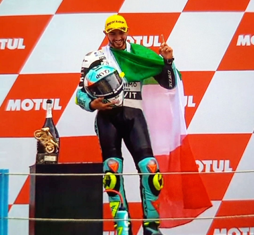 È tripudio tricolore: Dennis Foggia dopo una gara in testa riesce a vincere precedendo Sergio Garcia e Romano Fenati, il pilota del Max Racing Team va a podio nonostante fosse stato costretto ad effettuare due long lap penalty.