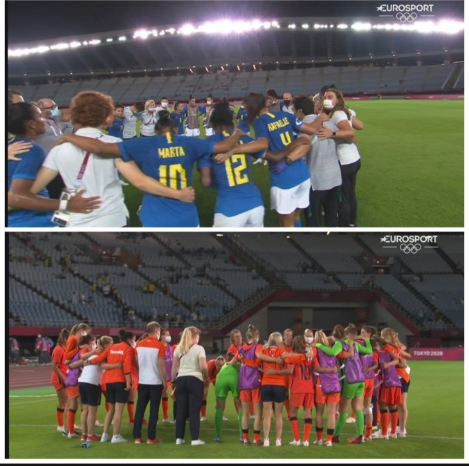 Come pronosticato i 90 minuti di Olanda-Brasile sono ricchi di continui capovolgimenti di fronti, gol e di grande calcio, già al 3’ l’Olanda passa in vantaggio col gol di Miedema su assist della Wilms, il Brasile non ci mette molto a recuperare il pareggio e lo fa con Debinha al 17’ e il primo tempo si chiude col risultato di 1-1. L’Olanda nel secondo tempo entra più convinta e al 59’ va in vantaggio col gol di Miedema,tuttavia il Brasile poi esce fuori. Infatti al 64’ Marta trasforma il rigore per il fallo di Van der Gragt sul Ludmila, quest’ultima al 68’ segna approfittando di un errore difensivo di Nouwen che nel fare il passaggio al portiere non si accorge della 12 del Brasile che in pressing si impossessa della palla e calcia in rete indisturbata. La partita sembra volgere verso le “Verdeoro” ma poi l’orgoglio delle “Orange” risale e al 78’ la punizione di Janssen finisce dritta in rete senza che Barbara possa far nulla. La Partita termina sul 3-3 complessivo e proietta l’Olanda in prima posizione per il passaggio del turno in virtù del numero maggior di gol segnati vista la parità di punti col Brasile.