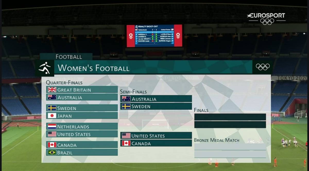 La Svezia non accenna a diminuire la propria forza ed intensità di gioco e piega anche il Giappone senza troppi pericoli nell’arco dei 90 minuti. Al 7’Eriksson su cross di Rolfo segna subito il gol del 1-0,tuttavia le giapponesi però riescono a reagire bene e al 23’ il gol di Tanaka su assist di Hasegawa rimette la partita sul 1-1 e riescono a tenere questo risultato fino alle fine del primo tempo. La Svezia dal tunnel degli spogliatoi esce più cattiva e riprende il controllo del match senza più lasciarsi andare o concedere spazio alle avversarie, al 53’ Blackstenius infila Yamashita con un tiro alla destra della porta concretizzando la superiorità di gioco della Svezia. Come abitudine in questo torneo olimpico la Svezia continua a giocare in attacco anche con il gol di vantaggio e al 65’ si guadagna un rigore per il tocco di mano di Miura sul tiro di Asllani, il penalty concesso grazie alla revisione del VAR viene trasformato dalla stessa Asllani senza troppo problemi. La partita termina sul risultato di 3-1 con la Svezia che dopo il rigore ha praticamente congelato la partita senza correre rischi, salvaguardando le energie in vista della semifinale contro l’Australia.