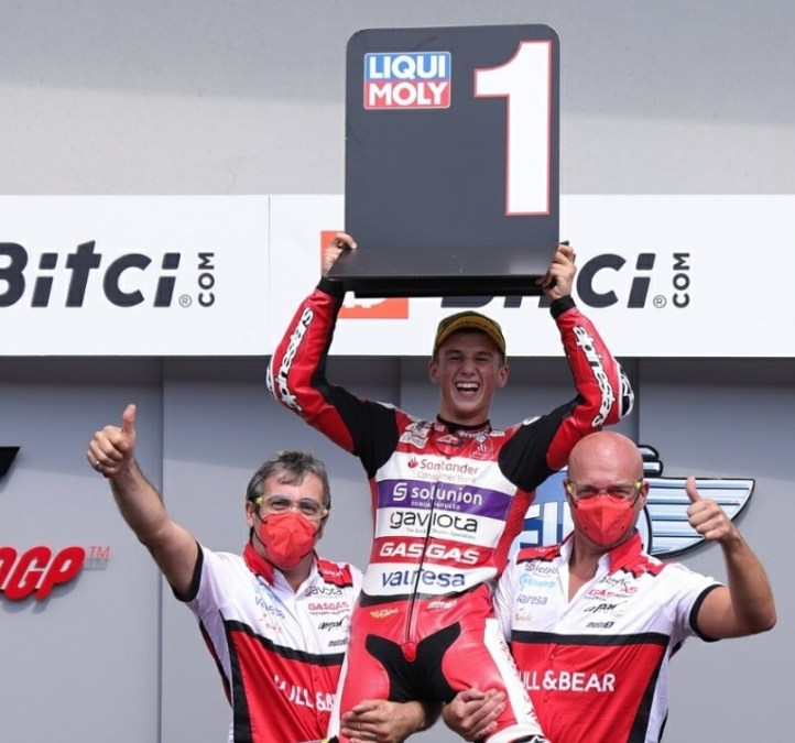 Sul podio con lui Deniz Oncü, beffato proprio all’ultima curva, e Dennis Foggia, che a sua volta beffa Acosta per l’ultimo gradino del podio.