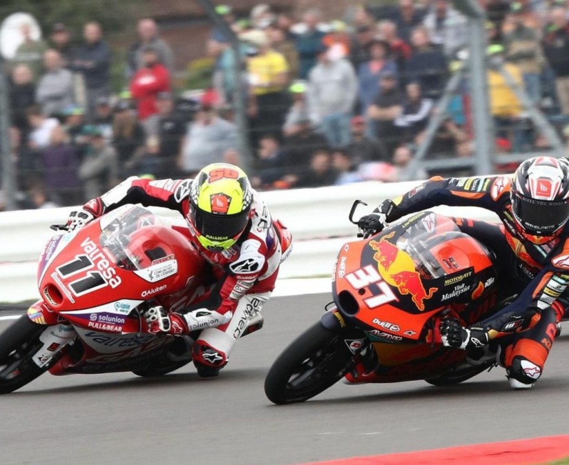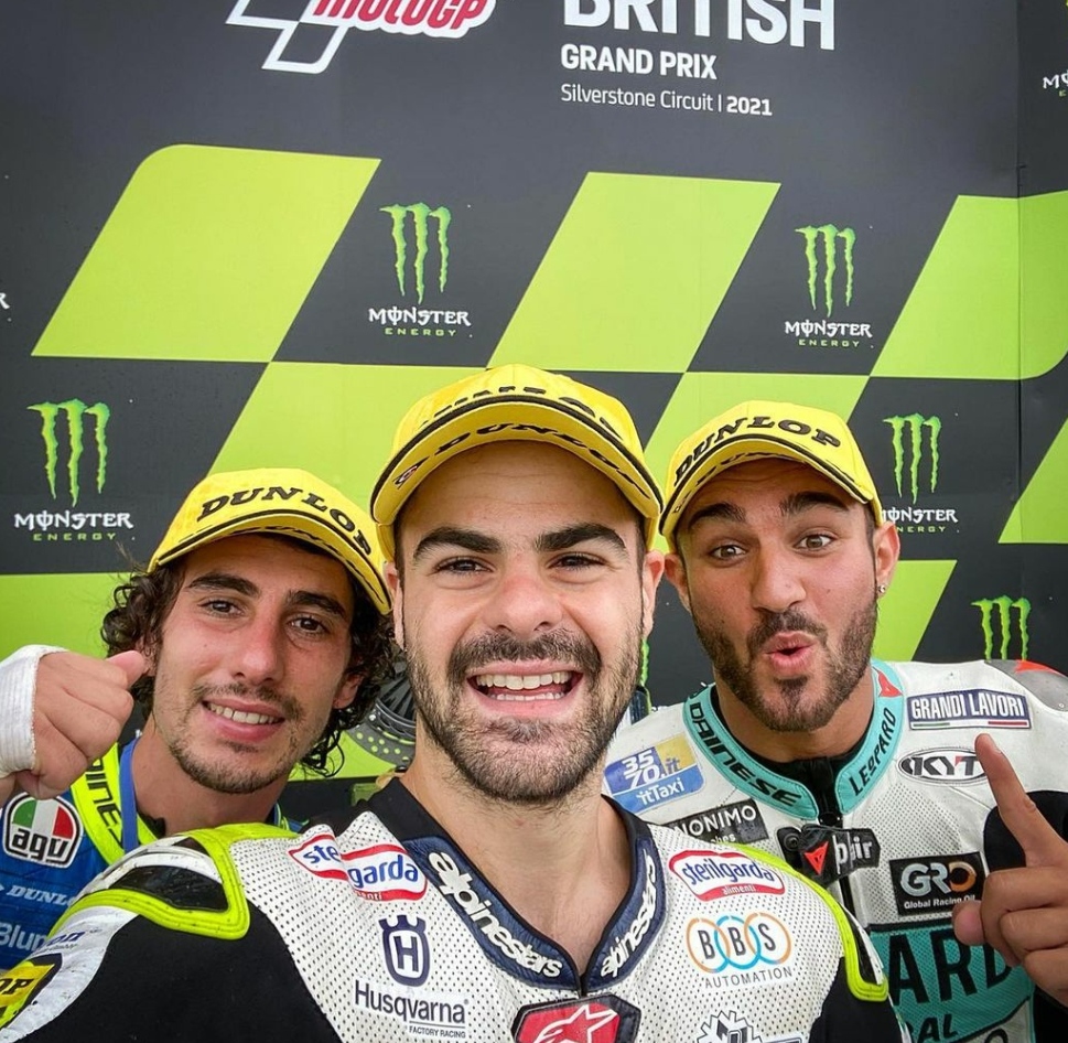 Continua l’estate magica degli italiani in Inghilterra. Romano Fenati domina in lungo e in largo sulla pista inglese andando così a conquistare una vittoria tanto meritata quanto importante per la stagione e per il campionato. Segue al traguardo un eroico Niccolò Antonelli che, rientrato in anticipo dopo l’infortunio alla mano, arriva secondo. A completare la tripletta italiana è Dennis Foggia, il pilota Leopard vince il duello dell’ultimo giro con Guevara e regala un autentico sogno tricolore.