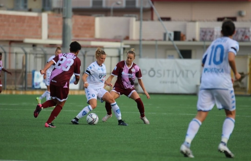 Il Pomigliano conquista a casa propria contro l’Empoli il primo punto in Serie A al termine di una partita incredibile che ha visto l’Empoli dominare la partita senza troppe difficoltà, soprattutto per i due calci di rigore fischiati contro Pomigliano. Il primo per il fallo su Bragonzi e trasformato da Prugna al 24’ e il secondo su Mella e trasformato da Bragonzi al 37’. Tuttavia la squadra campana ha creato più di qualche spavento alla porta di Capelletti, ma non ha trovato il giusto varco in un Empoli molto organizzato. Nel secondo tempo la partita non cambia molto e tutto fa presagire per una vittoria comoda per l’Empoli, ma a cinque minuti dal fischio finale cambia tutto. Moraca trasforma in rete l’assist di Rinaldi e da quel momento parte l’assalto verso l’area dell’Empoli che si chiude in difesa e ce da soffrire per la formazione di Ulderici. Il recupero è molto lungo e Pomigliano butta quanti più palloni possibili in area e al 96′ Danielle Cox riesce a liberarsi e tirare in rete il gol del 1-1 e fare la storia di Pomigliano. L’Empoli paga un’altra ingenuità e un calo di tensione che costa due punti comunque molto importanti in questo avvio di stagione, ma nulla che non possa essere corretto nel proseguo del campionato.