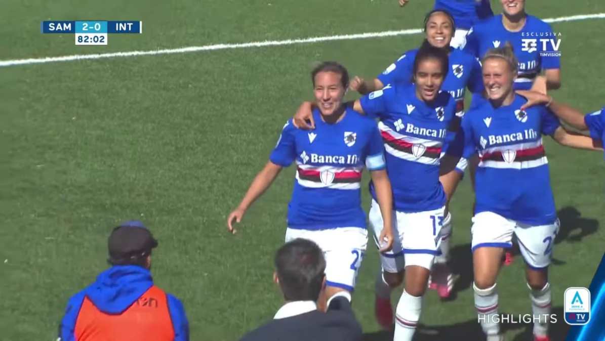 La Sampdoria nella prima partita di giornata si aggiudica i tre punti con un perentorio 3-0 sull’Inter. Entrambe le formazioni hanno una partita da recuperare e ogni punto è prezioso in attesa del recupero della quarta giornata, cosa che avverrà per l’Inter Sabato 16 Ottobre giocando contro la Roma, ma per adesso bisogna pensare al presente. Le neroazzurre di Rita Guarino purtroppo non sono mai riuscite a trovare la marcia giusta per contrastare la Samp, che invece al 12’ mette già la freccia del vantaggio con Tarenzi per poi raddoppiare al quarto d’ora con Re. La partita racconta poi ben poco con l’Inter che prova invano a trovare il gol per riaprire il match, ma tra errori di finalizzazione come Nchout che si fa parare sottoporta da Tampieri al 28’ e la granitica prestazione dell’estremo difensore blucerchiato non c’è possibilità per l’Inter. Tarenzi al 82’ su assist di Rincòn sentenzia il 3-0 con una tanto velenosa quanto classica doppietta da ex. Giornata da incorniciare per la 33enne che oltre a festeggiare i primi due gol con la maglia blucerchiata festeggia anche il 100esimo e il 101esimo gol in serie A.