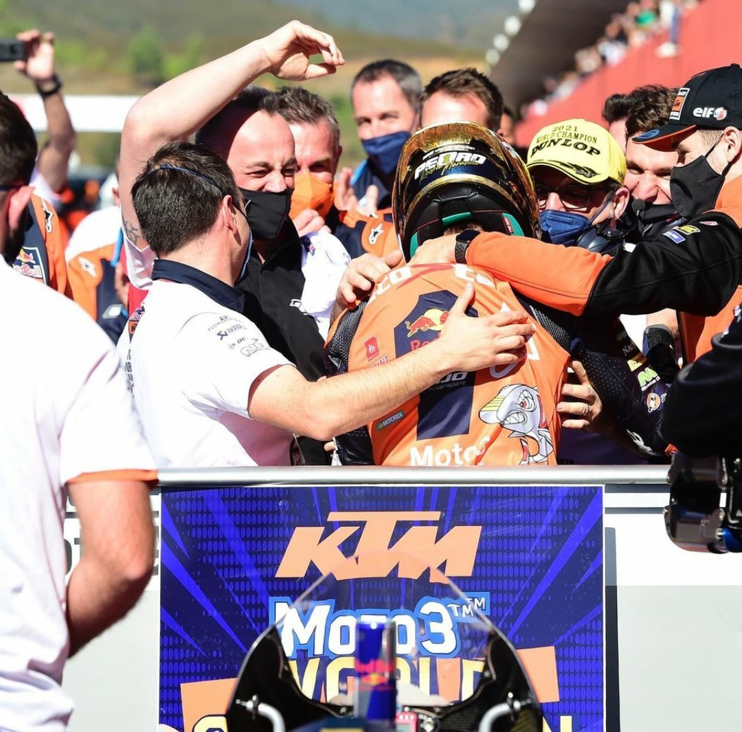 Gara spettacolare in Moto3 a Portimao. I due contendenti al titolo si trovano fianco a fianco sin dai primi giri, non risparmiando entrate e sportellate, il tutto in maniera aggressiva, ma mai scorretta o avventata. Continua la bagarre, il gruppo non si sgrana ed i piloti a giocarsi la vittoria sono tanti.