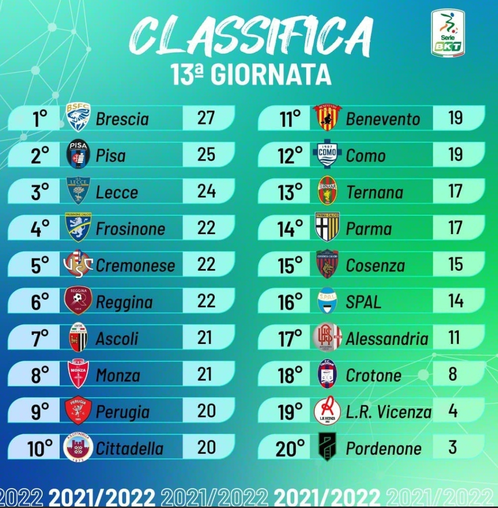 La Cremonese rimonta in casa della Reggina e vince lo scontro diretto per la zona playoff. Bene Monza e Ascoli che vincono rispettivamente con Como e Pordenone, friulani sempre più nel baratro. Il Perugia vince e spedisce il Crotone in zona retrocessione. Pareggiano Ternana e Cittadella, così come Cosenza e Parma. Importante vittoria dell’Alessandria che con il 3-2 sulla Spal recupera punti importanti per la salvezza.