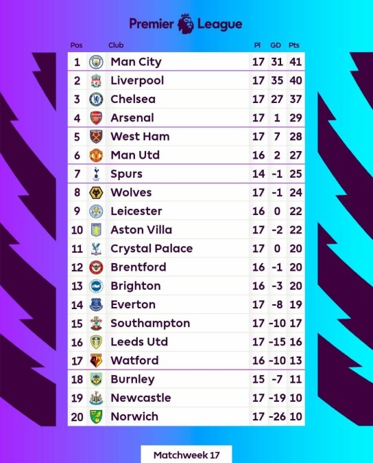 Di seguito la classifica. Appuntamento nel weekend, con lo spettacolo della Premier League!