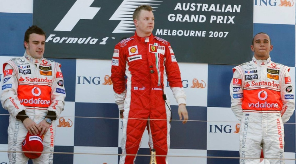 Kimi vinse quella davanti alle due McLaren guidate dal campione in carica Fernando Alonso e dal “rookie” Lewis Hamilton, che raggiunge così il podio nella sua gara d’esordio in Formula 1