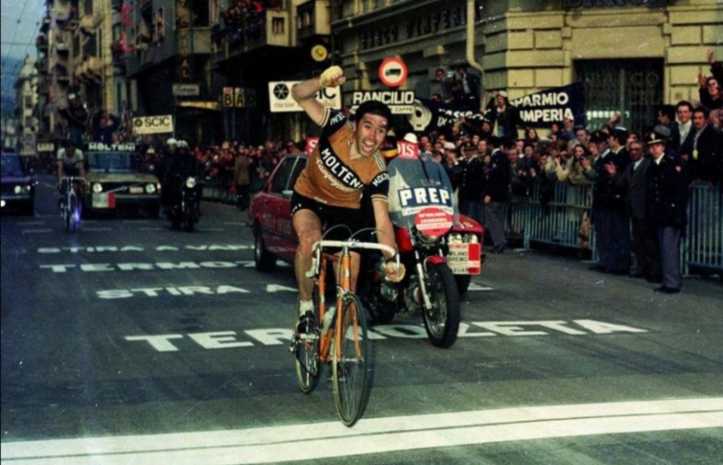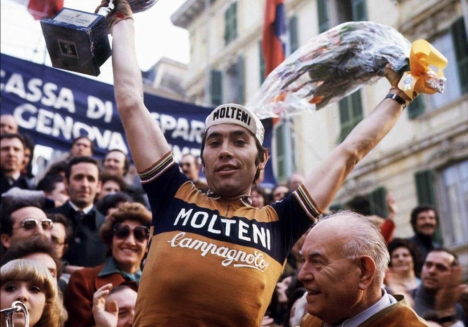 È il 19 Marzo 1976, da Milano prende il via l’edizione numero 67 della mitica Milano-Sanremo, che verrà ricordata dagli appassionati come “il canto del cigno” del cannibale Eddy Merckx. A trionfare, infatti, dopo una corsa di 6h55’28”, è il belga, che conquista per la settima volta “la classicissima”, superando così l’eterno Costante Girardengo, fermo a sei.