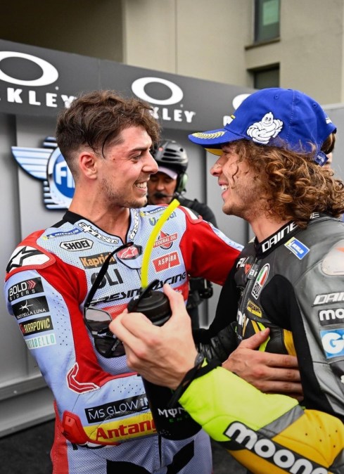 Dietro di lui ecco i due giovani del TeamVR46, Bezzecchi e Marini con due gran giri vanno a completare la prima fila. A completare il quintetto Ducati ci pensano Zarco e Pecco Bagnaia, un po amareggiato per non aver ottenuto la Pole Position sul circuito di casa.
