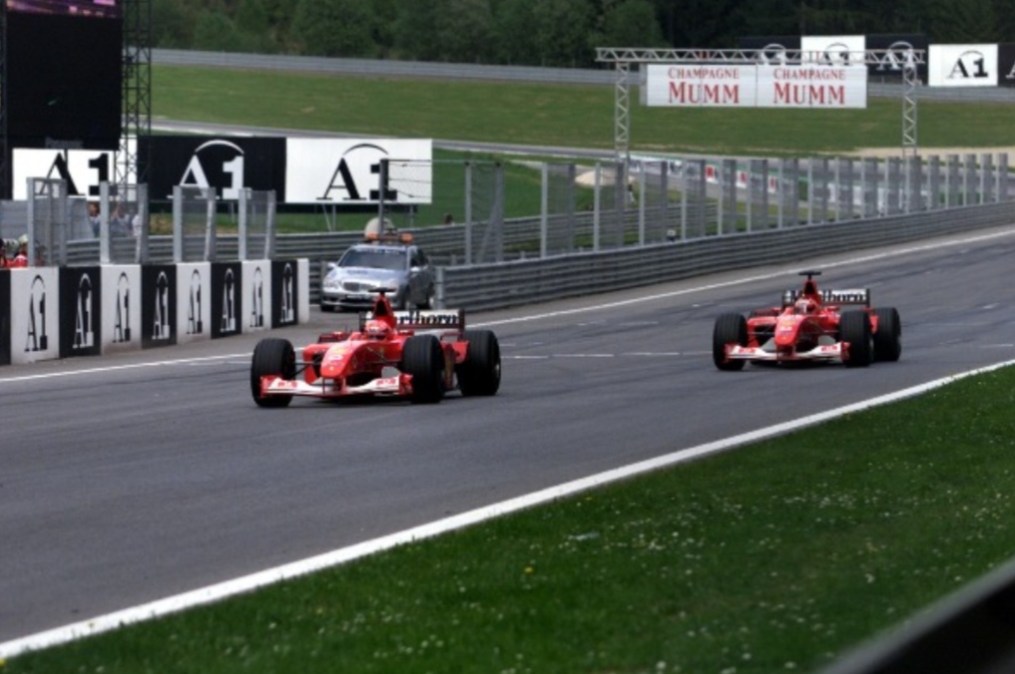 La stagione 2002 vede uno strapotere della Ferrari e di Michael Schumacher che mettono le cose in chiaro sin dall’inizio. Il tedesco infatti mette a segno 5 vittorie nelle prime 6 gare e doppia in classifica il principale rivale Juan Pablo Montoya. Da segnalare però la figuraccia rossa a Spielberg in Austria quando Barrichello con l’altra Ferrari condusse la gara dall’inizio alla fine ma proprio sul traguardo fu costretto a cedere la vittoria al compagno di squadra Schumacher.