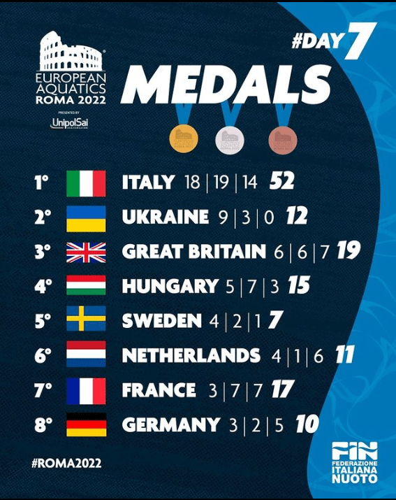 Si è chiuso mercoledì l’europeo di Roma per quello che riguarda il nuoto in corsia: 13 ori, 13 argenti e 9 bronzi