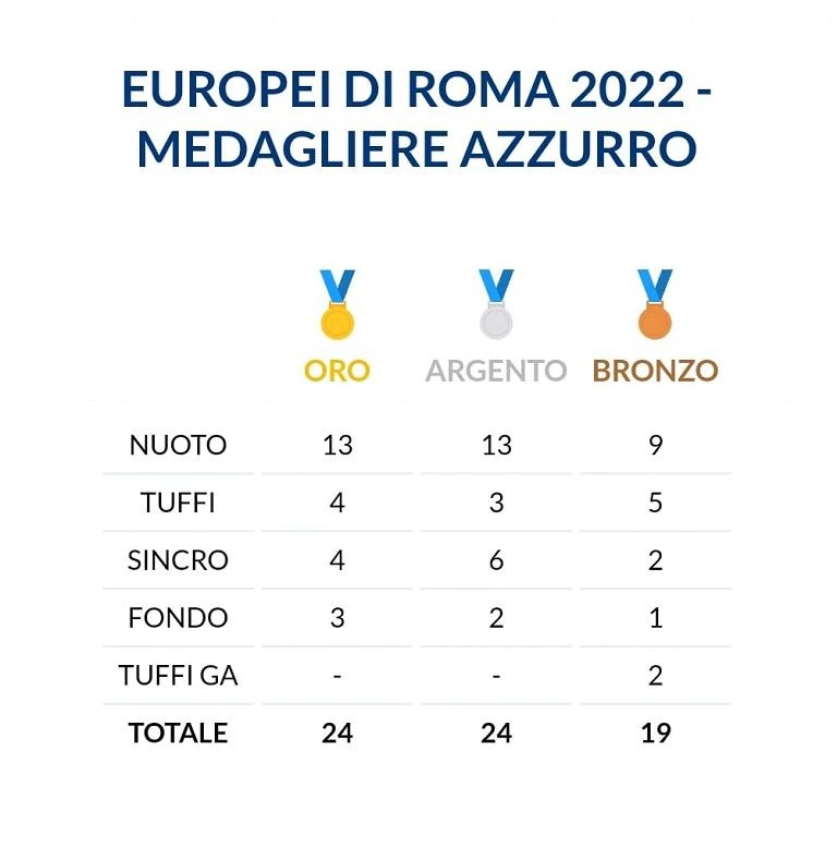 Va in archivio l’Europeo di Roma 2022 e per l’Italia è record di medaglie in tutte le discipline. 24 ori, 24 argenti e 19 bronzi: il medagliere è Azzurro