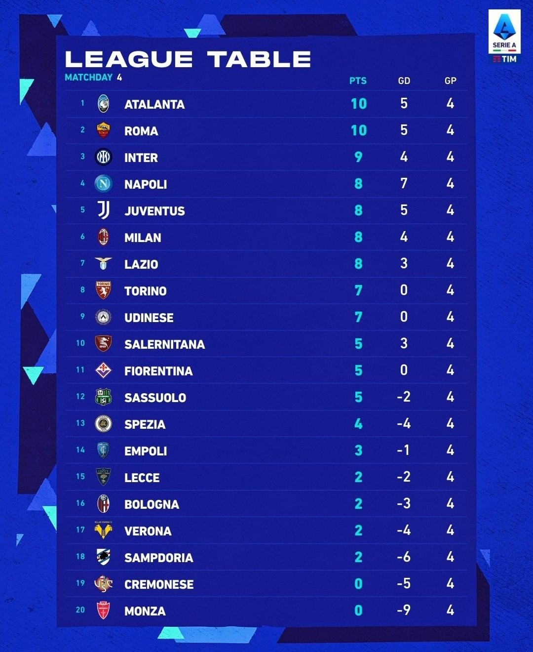 L’unica squadra a reggere il passo della Roma è, al momento, l’Atalanta. Buono l’inizio di stagione dei ragazzi di Gasperini che, anche contro un Torino molto in forma, riesce a vincere per 3-1. Decisiva la tripletta di Koopmeiners per i bergamaschi, a segno Vlaśic nei granata.