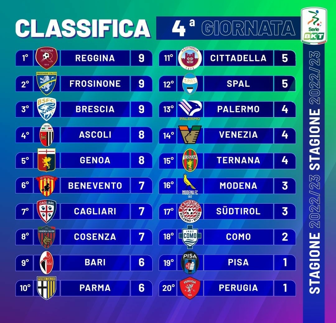 La Serie B mette in archivio anche la quarta giornata, nessuna squadra riesce, ad ora, a tentare una fuga e la classifica è cortissima. Sono ben 8 le compagini compresse nella distanza di soli 3 punti.