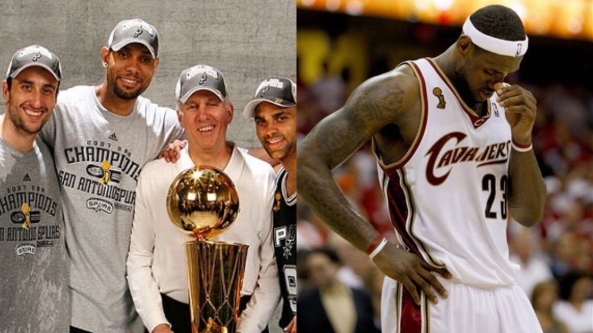 Stavolta non c’è Detroit, c’è Cleveland. LeBron James, 23 anni, alla sua seconda apparizione ai playoff, porta i Cavs fino in fondo, ma sul più bello si scioglie. Gli Spurs travolgono LeBron e i suoi Cleveland Cavaliers con un sonoro 4-0. Tony Parker è l’MVP, ma il mattatore è sempre lui. Sempre Ginobili. Terzo titolo.