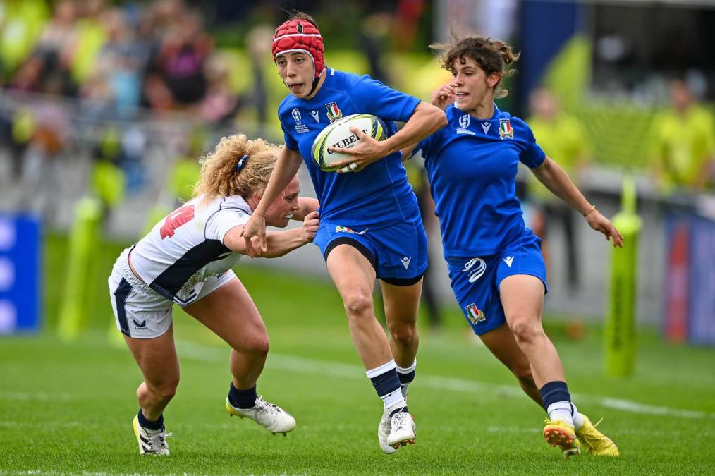 Nella notte italiana le ragazze di Andrea Di Giandomenico hanno conquistato un pesantissimo successo contro la Nazionale a Stelle e Strisce, costretta ad arrendersi 22-10. Dopo un inizio incerto, capitan Giordano e compagne sono state in grado di uscire da una situazione difficilissima, sfruttando i punti deboli avversari e scavando un solco significativo a meta ripresa malgrado l’inferiorità numerica. La prossima settimana toccherà al Canada, per poi concludere il girone contro il Giappone.