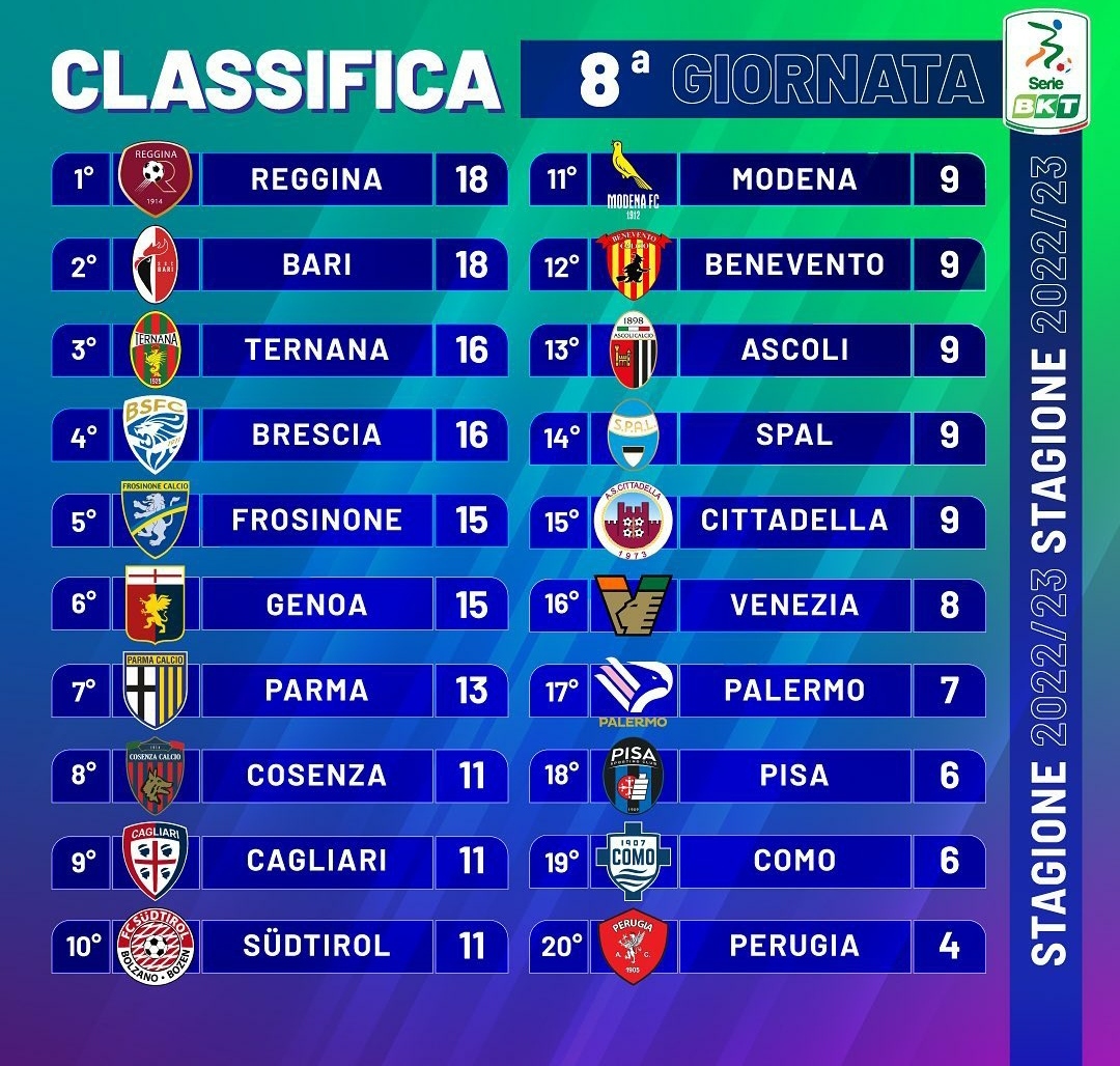 L’ottava giornata di Serie B finisce in archivio, le gerarchie si definiscono sempre più e la classifica comincia, dopo ben otto giornate, ad allungarsi.