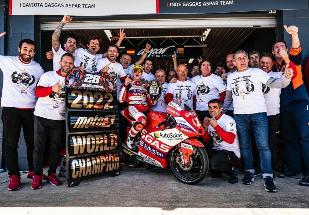 Tanto merito al team Aspar, team che ha creduto in lui da subito, permettendogli di vincere il mondiale Junior nel 2020 e fornendogli una sella nel 2021, per dargli poi, nel corso di questa stagione, la moto che gli permetta di lottare, e vincere il titolo. Questa storia continuerà in Moto2 nella prossima stagione e chissà, magari un giorno in MotoGP, con il team GasGas che ha da poco ufficializzato l’approdo nella categoria regina.