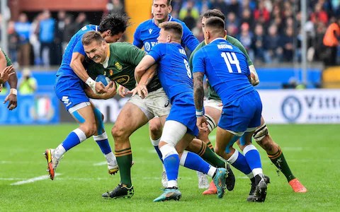 Nemmeno il tempo di riprendere il gioco ed il Sudafrica, sui piedi del solito Cheslin Kolbe, ha la possibilità di tornare a +5 a causa di un’infrazione di Giacomo Nicotera nel breakdown: 3-8.