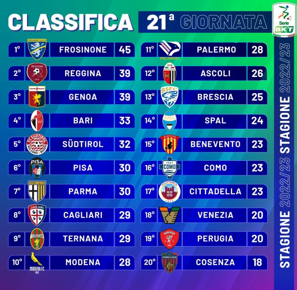 Con questa vittoria il Frosinone mantiene la leadership di 6 punti sugli inseguitori, momento buio per il Brescia che non vince da sette partite ed è solo a 2 punti di vantaggio sulla zona playout.