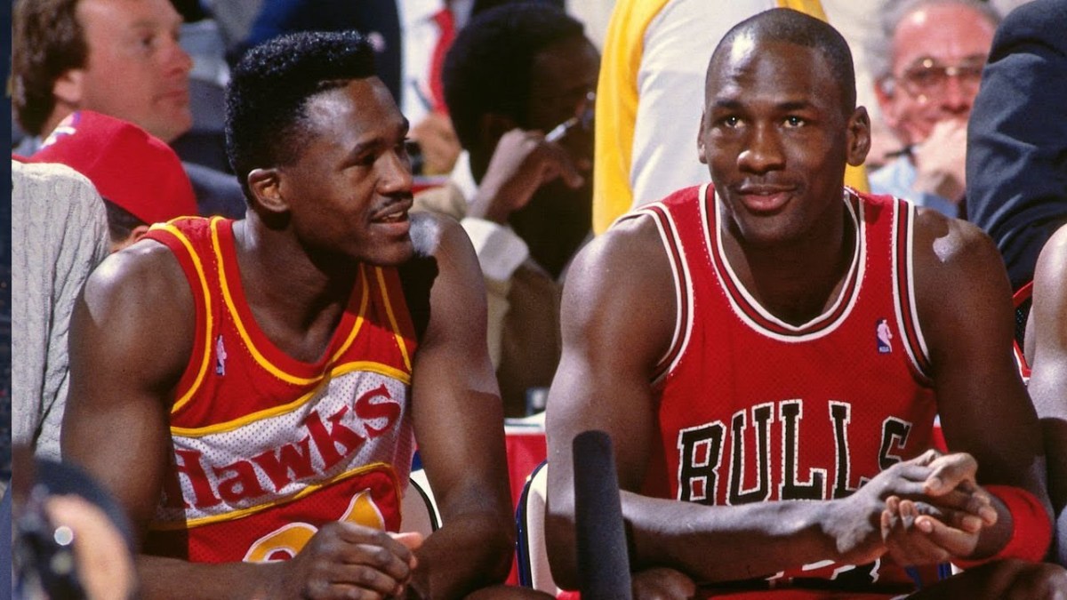 MJ all’epoca ha 25 anni, è alla quarta stagione in NBA ed è nel cosiddetto prime atletico. Non ha ancora vinto un titolo, ma il 1988 segna la prima delle tante svolte della sua carriera. L’altro è Dominique Wilkins, 28 anni, stella degli Atlanta Hawks, schiacciatore professionista e penetratore micidiale, che a fine carriera verrà a giocare in Italia, alla grande Fortitudo di Seragnoli.