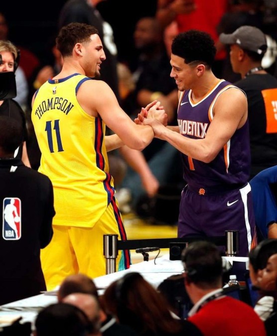 Il secondo a presentarsi sul parquet dello Staples Center è Devin Booker, che al contrario di Harris opta per il senso antiorario. Con i primi tre carrelli, quindi su un totale di 18 punti, il cestista dei Suns ne totalizza 14, stesso risultato di Harris, ma lo stint finale è diametralmente opposto. Booker, infatti, non accusa la fatica e continua a mantenere ritmo ed esplosività; mette dentro tutti i palloni del quarto rack e conclude in maniera sontuosa mettendo dentro quattro “money ball” sulle cinque disponibili nel money rack. Il risultato finale è clamoroso, infatti mai nessuno prima di lui era riuscito a fare meglio, Stephen Curry e Klay Thompson detenevano il precedente record del contest con 27 punti, stabilito rispettivamente nel 2015 e nel 2016. Il totale alla fine della performance è di 28 punti realizzati sui 34 disponibili. Chiunque al suo posto si sarebbe lasciato trascinare dall’entusiasmo, ma Devin sa bene che il terzo ed ultimo contender non è uno qualunque, ad attendere il suo turno c’è, infatti, niente poco di meno che Klay Thompson, uno che ha fatto del tiro da tre un’arte.