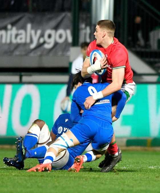 Ottima partenza dei gallesi, capaci di ottenere immediatamente ben 3 calci di punizione utili per strutturare la prima offensiva assoluta del match. Tuttavia la scelta di non piazzare non risulta corretta, tanto da consentire agli azzurrini di risalire il campo.