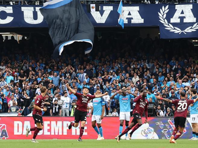 Il Napoli invece affronta la Salernitana di Paulo Sousa che viene da otto risultati utili consecutivi, ma che con una vittoria diventerebbe campione d’Italia. Al 7′ ha la palla del vantaggio Osimhen ma il suo colpo di testa è parato da Ochoa che si ripete al 23′, sempre su Osimhen che colpisce di testa all’angolino, trovando la risposta del portiere messicano. La prima frazione termina senza grandi emozioni mentre, nella seconda, il Napoli va subito a caccia del gol del vantaggio. Prima ci prova al 51′ Kvaratskhelia ma il tiro del georgiano termina fuori di poco e poi, al 62′, arriva il vantaggio partenopeo: corner battuto da Raspadori che trova il colpo di testa di Rrahmani che colpisce bene ed insacca. I padroni di casa continuano a spingere e quattro minuti dopo sfiorano il raddoppio con Elmas, con il tiro del macedone che sfiora di poco la rete. Al 79′ Osimhen ci riprova: si fa spazio in area ed angola la conclusione, il nigeriano però trova ancora una volta la risposta del portiere granata. A 6′ dal termine arriva la più classica delle beffe: palla in mezzo all’area che viene respinta dalla difesa partenopea che però arriva a Dia che calcia meravigliosamente all’angolino destro, con Meret che non ci può arrivare. La squadra di Spalletti si riversa in avanti ma Ochoa si dimostra mostruoso sul tiro a tu per tu con Kvaratskhelia, deviando il pallone in corner, e si ripete al 93′ sulla conclusione potente di Rrahmani. Finisce in pareggio e la festa partenopea viene posticipata di qualche giorno.