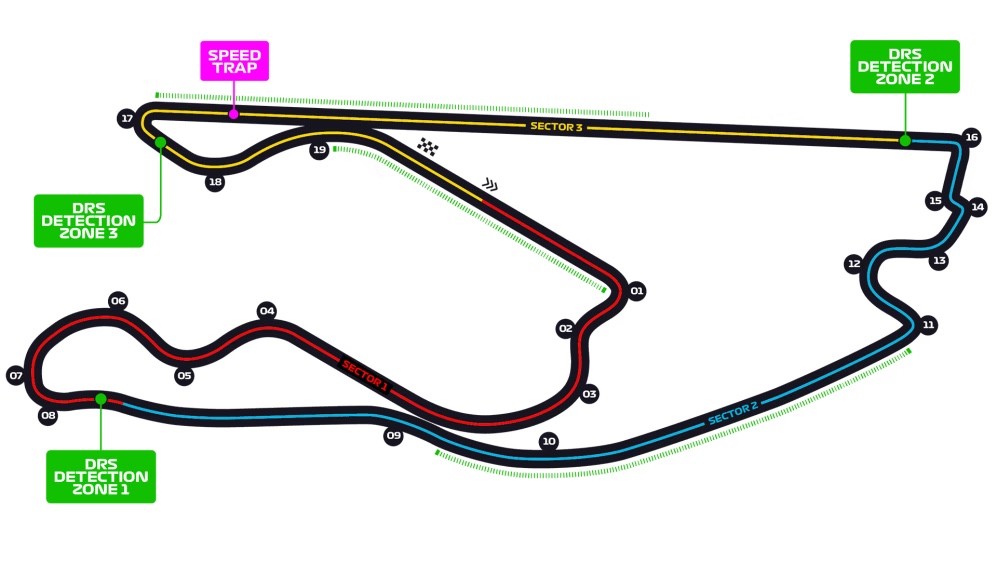 Il tracciato conta ben 5412 m, in cui si evidenziano 19 curve: rispettivamente 7 a destra e 12 a sinistra. Tutto il percorso viene percorso in senso orario, come da decisione degli organizzatori. Una pista che viene percorsa con una media di 223 km/h, una media non altissima rispetto ad altri circuiti. La pista presenta comunque 3 zone DRS situate sul rettilineo principiale, tra curva 10-11 e tra 16-17, zone in cui si raggiunge una velocità massima di 320 km/h. Una tratta situata in una zona pianeggiante, che presenta solamente un leggero dislivello tra curva 13 e 16. La migliore zona per sorpassare è sicuramente curva 1, in cui i piloti aiutati dal DRS possono provare a sferrare l’attacco. L’ ingresso della pit lane di torna dopo curva 18, prima dell’ ultima.