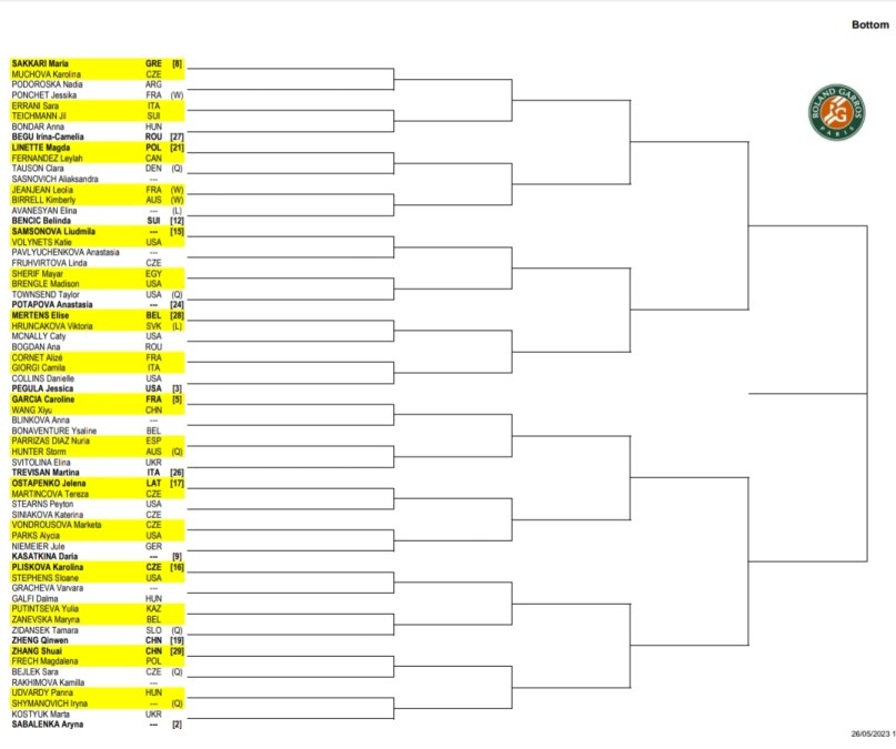 Fra gli accoppiamenti del primo turno, saltano agli occhi Shelton-Sonego, Auger Aliassime-Fognini, Bublik-Zeppieri e Arnaldi-Galan. Alcaraz esordirà contro il “nostro” Cobolli e potrebbe trovare un altro azzurro agli ottavi, Lorenzo Musetti (nello stesso pezzo di tabellone di Cameron Norrie, testa di serie numero 14). Il n.1 del mondo dovrà fare i conti, probabilmente, anche con Tsitsipas ai quarti, per poi sfidare uno tra Djokovic e Rublev in semifinale. Nell’altro lato del tabellone c’è il miglior italiano, Sinner, che dovrà vedersela all’esordio con Muller, per poi arrivare agli ottavi opposto a Tiafoe o Zverev. È inserito nello stesso quarto di Medvedev, dunque, con molta probabilità, dovrà vedersela pure con il russo. Il vincente di questo spicchio di tabellone, potrebbe affrontare in semifinale uno tra Holger Rune e Casper Ruud. Per quanto riguarda il tabellone femminile, i possibili incroci ai quarti sono: Swiatek-Gauff, Rybakina-Jabeur, Sakkari-Pegula e Garcia-Sabalenka. Le principali insidie sono rappresentate da Paula Badosa, Jelena Ostapenko, Petra Kvitova, Karolina Pliskova, Ludmila Samsonova, Veronika Kudermetova e dall’esperta Victoria Azarenka. Sperando che i “nostri” e le “nostre” si spingano più in là possibile, chi vincerà il Roland Garros 2023? Noi vi terremo compagnia e vi aggiorneremo costantemente, restate sintonizzati!