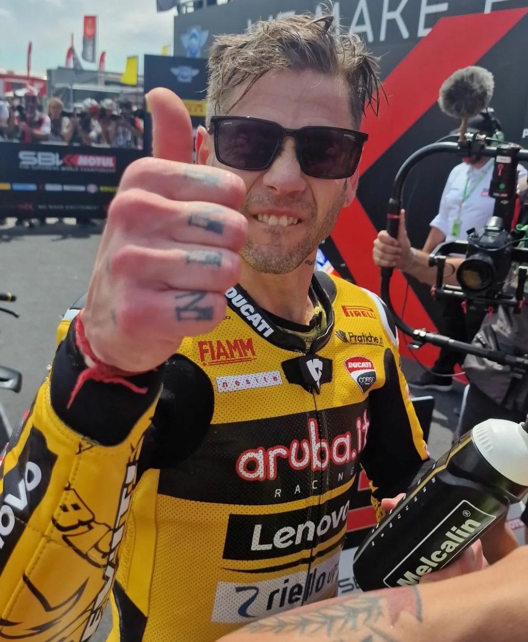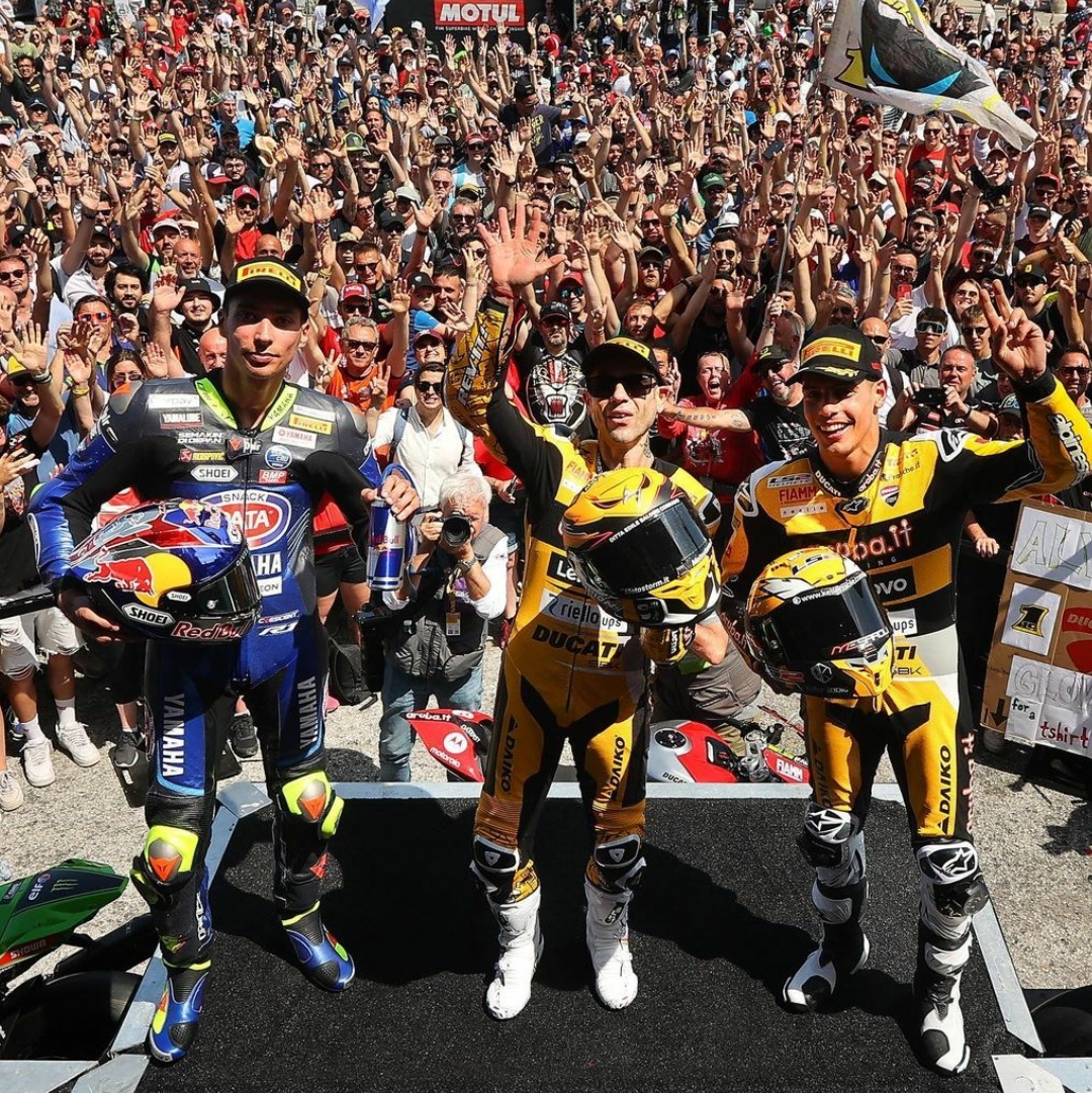Secondo al traguardo è Michael Rinaldi, a completare la doppietta Ducati sul suolo di casa. Completa il podio il solito Razgatlioglu che si dimostra ancora una volta il più forte dei piloti non Ducati. 4° Bassani, che sfrutta la caduta di Petrucci e si posiziona ai piedi del podio. 5° Rea che, con Aegerter, è autore dell’unico duello degno di nota in gara, lo svizzero è poi sesto al traguardo.