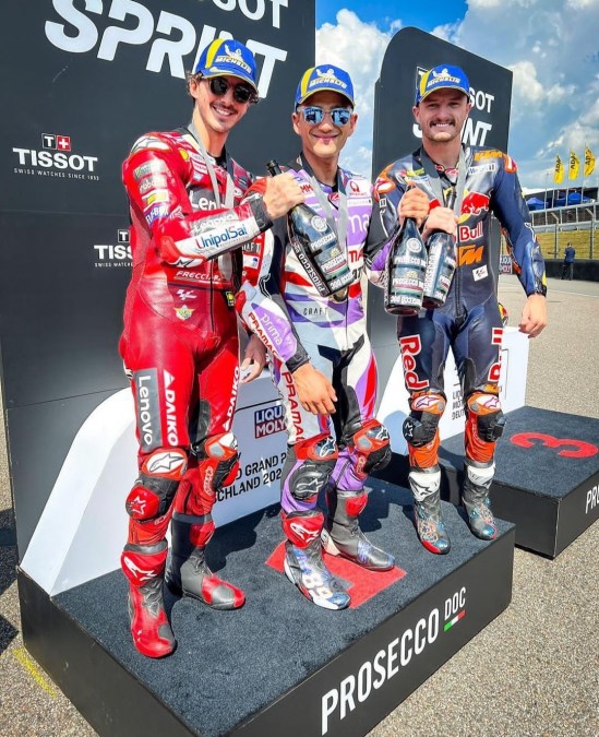 Al Sachsenring la Sprint Race è dominata da Jorge Martin, che dopo aver preso il comando domina la gara davanti a Bagnaia e Miller che guidano in solitario. 4° Marini dopo una grande battaglia con Binder. Marquez solo 11° e Quartararo 13°.