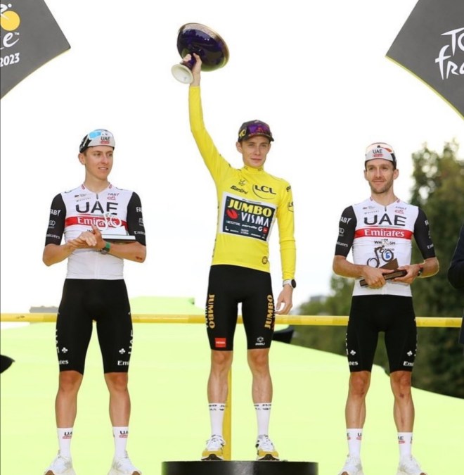 Vingegaard parte un po’ più a rilento rispetto a Pogacar, che nelle prime tappe, come l’anno scorso, scatta sul traguardo per guadagnare secondi di abbuono. Questa tattica non ripaga più di tanto perché al primo strappo del danese, lo sloveno paga oltre un minuto. Dunque, la sesta tappa, quella del Tourmalet, è il primo spartiacque del Tour 2023. Il giorno dopo Pogacar risponde di rabbia e va a vincere, dimezzando lo svantaggio, ma Vingegaard si veste di giallo. Nelle tappe successive Tadej continua ad accorciare in classifica generale, ma non riesce a effettuare il sorpasso. Si arriva alla cronometro decisiva con il danese in vantaggio per soli 10 secondi. È qui che Jonas compie un vero e proprio capolavoro. Guadagna ulteriori 1’38” sul rivale e, di fatto, chiude il Tour de France 2023. Il giorno seguente, Pogacar crolla e consegna la vittoria a Vingegaard, che gestisce perfettamente le energie fino a Parigi. Un plauso, però, va fatto anche agli avversari, soprattutto Tadej Pogacar, l’unico a tenere il passo del danese, regalandoci un Tour fantastico. Completa il podio Adam Yates.