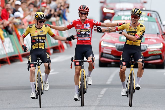 Lo scalatore della Jumbo ha accumulato gran parte del vantaggio necessario per la vittoria finale nella sesta tappa, vinta davanti al giovane Lenny Martinez dopo una fuga durata quasi quattro ore; nonostante la cronometro a lui ostile è riuscito poi a mantenere la maglia rossa, anche grazie alla collaborazione dei due fuoriclasse citati nel paragrafo precedente, che, dopo alcuni malcontenti iniziali, si sono adeguati alla decisione della squadra e hanno dunque portato Kuss in trionfo nella capitale spagnola, ripagandolo così per quanto avvenuto nei grandi giri precedenti. Il momento più difficile per il corridore a stelle e strisce si è verificato nella frazione che terminava sull’Angliru, poiché è stato staccato da Roglic, vincitore di tappa, e Vingegaard e ha inoltre visto il suo vantaggio scendere sotto i 10″. Questo è senza dubbio il successo più importante della carriera di Kuss, che aveva però già vinto una tappa proprio alla Vuelta, una al Tour de France e una al Giro del Delfinato; non si era mai classificato nelle prime cinque posizioni della classifica generale di un grande giro dal momento che aveva sempre svolto ruoli di supporto nei confronti dei suoi capitani.