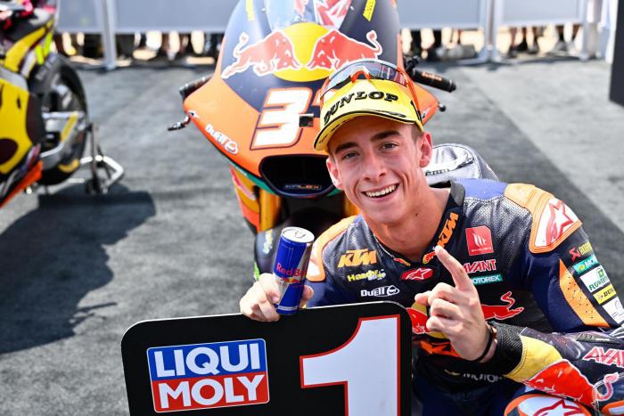 Allo start del GP Jaume Masia e Ayumu Sasaki hanno provato un’ azione solitaria allungando sugli avversari, impeccabile prova dello spagnolo che ha centrato il secondo successo stagionale. Nel primo giro si è visionata una brutta caduta di Kelso, un high side che lo ha disarcionato dalla sua moto. Dopo tre giri Matteo Bartelle che si era riportato in terza posizione dopo una difficile partenza è stato vittima di una scivolata, che lo ha messo fuori dai giochi. Ottimi tempi per Veijer e Toba che hanno provato di ricucire il gap rispetto al tandem di testa. Negli ultimi sei giri Sasaki ha sofferto il passo di Masia ed è stato ripreso dai più immediati inseguitori. Nell’ ultimo giro si è aperto il duello trai due Liqui Moly Husqvarna Intact e Kaito Toba, che aiutato dal contatto tra compagni di squadra con annessa caduta di Collin Veijer ha centrato il 2º posto davanti Sazaki. Ai piedi del podio Dani Holgado che dovrà condividere la leadership del mondiale con il vincitore di giornata. 5º e 6º posizione conquistate rispettivamente da David Alonso e David Munoz, che hanno preceduto il primo degli italiani Riccardo Rossi ottima prova del genovese. Alle sue spalle Ortolá e il bergamasco Stefano Nepa, a chiusura della top 10 Antonio Rueda davanti al compagno di team Filippo Farioli. Mentre ha chiuso in 14º posizione Deniz Öncü, risalendo 14 posizioni rispetto alla griglia di partenza.