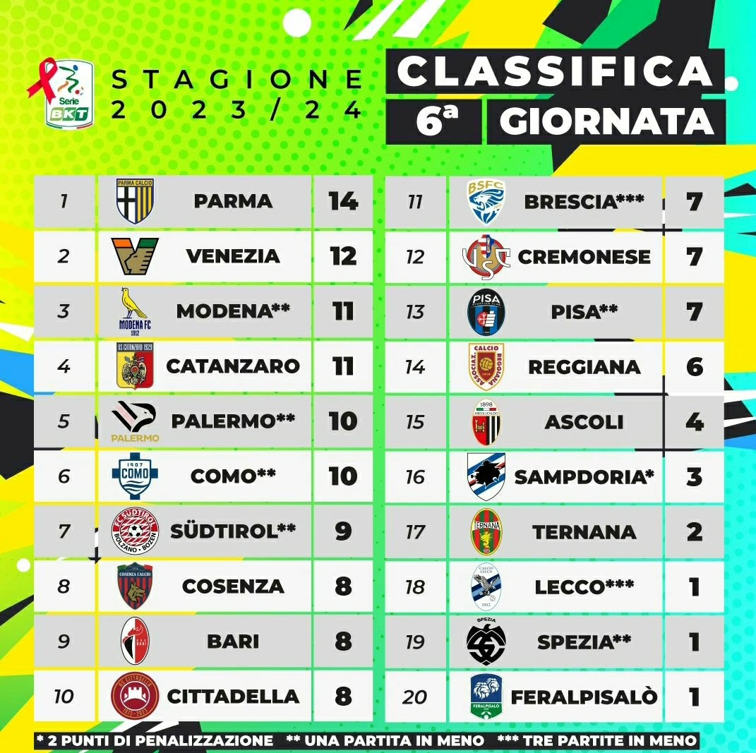 Sesta giornata di campionato cadetto in archivio: è il segno X a contraddistinguere questo turno, con ben 6 partite a finire in risultato di parità. Andiamo a rivedere nel dettaglio le partite di questa giornata.