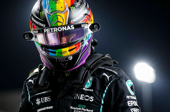 Hamilton con un gran giro si piazza davanti a tutti, subito dietro Verstappen e le due McLaren.