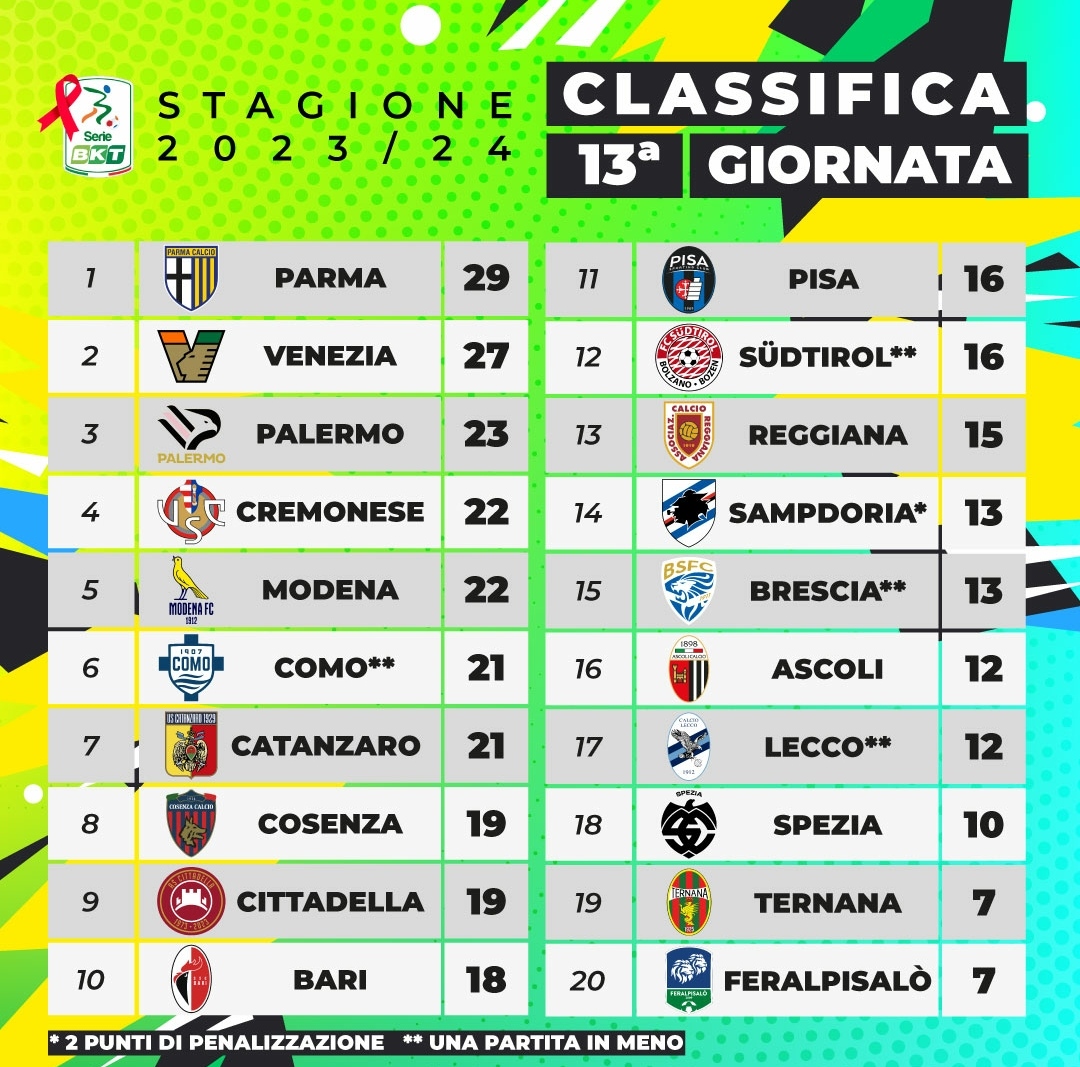 Continua il periodo d’oro del Lecco che, con questa vittoria, arriva a quota 5 risultati utili consecutivi. Torna alla sconfitta il Parma dopo 3 vittorie consecutive, ora i crociati hanno un vantaggio di soli 2 punti sulla prima inseguitrice.