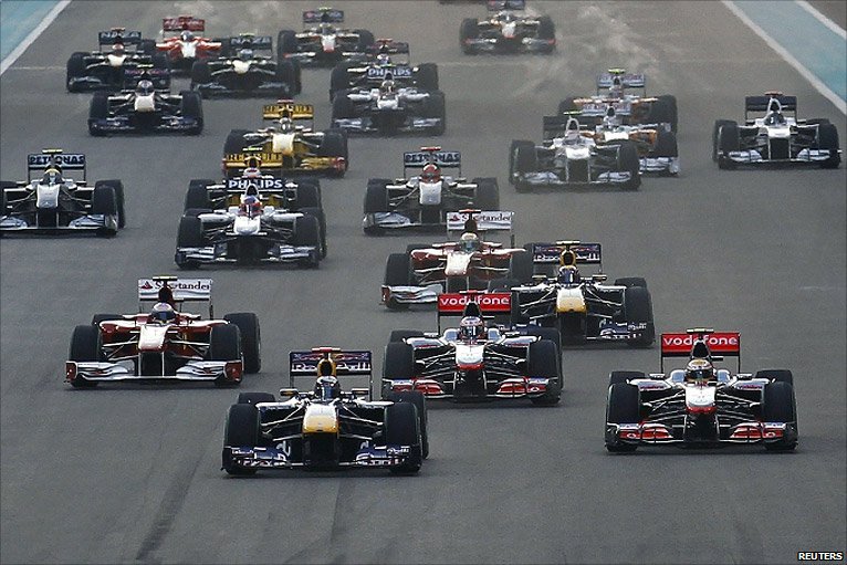 Nel frattempo Vettel e Hamilton e gli altri piloti di testa effettuano il loro pit stop, rientrando nelle posizioni di loro competenza. Alonso d’altro canto passerà tutta la gara negli scarichi della Renault di Petrov, finendo così il mondiale a soli 4 punti di distacco da Vettel.