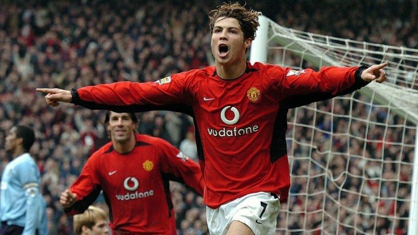Il 13 agosto del 2003, un promettente Ronaldo, sui taccuini dei migliori talent scout d’Europa, arriva a Manchester, sponda United, dallo Sporting Lisbona. Diventa così il teenager più costoso del calcio inglese (12,24 milioni di sterline), oltre al primo giocatore portoghese nella storia dei Red Devils. Prende inizialmente la maglia numero 28, come allo Sporting, per non sentire la pressione della 7 -indossata da leggende come Best, Cantona, Beckham- salvo poi indossarla la stagione successiva, convinto da Sir Alex Ferguson.