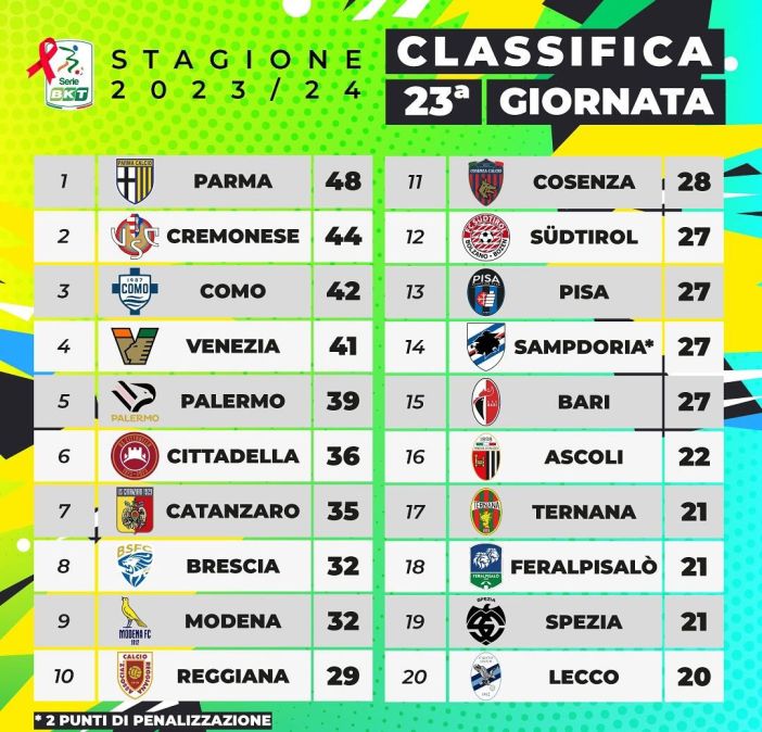La partita più attesa di giornata è senza dubbio Parma-Venezia. Al Tardini si incontrano le prime due della classe ed il risultato potrebbe indirizzare il campionato a favore di una o dell’altra.
