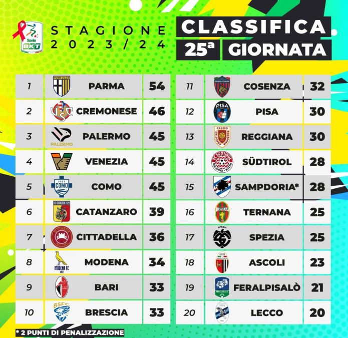 Il venticinquesimo turno di campionato cadetto si chiude tra gol, spettacolo ed emozioni. Il Parma vince ancora nei minuti finali, lo scontro diretto di alta classifica va al Palermo, mentre non vanno oltre il pari Cremonese e Venezia: andiamo ora a rivedere tutto quel che è successo nell’ultima giornata disputata.