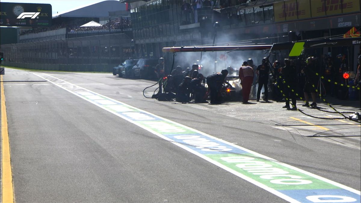 Giro 35 entra al pit stop Leclerc che rientra davanti a Perez. Il messicano entra al giro dopo rientrando dietro Tsunoda. Al giro 40 entra al box Piastri davanti a Russell. Norris si ferma al giro dopo e Leclerc è davanti, ma con una gomma più vecchia e consumata. Sainz ai box subito per rientrare davanti di 6 secondi su Leclerc, che ha 4 secondi su Norris.